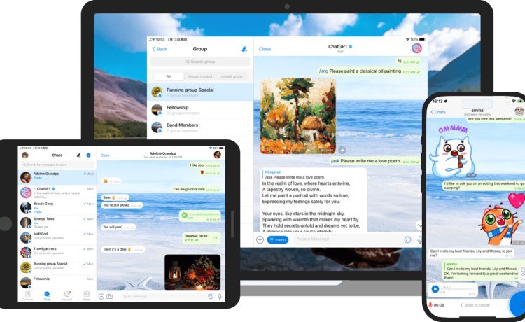 土豆聊天支持Windows、Mac、iOS和Android等多个平台,实现跨设备无缝切换。您可以在电脑上处理复杂工作,在手机上随时查看重要消息,确保不错过任何关键信息。云端同步功能让您在任何设备上都能获取完整的聊天记录和工作资料。